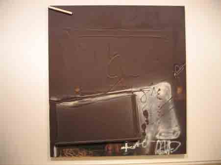 • 19 Antoni Tàpies zeigt Materie greifbar. Er reichert Leim mit Sand, Erde und Pikmenten an um nach dem Trocknen die Oberfläche zu überarbeiten, aufzureißen, etwa ins Material grafische Zeichen zu gravieren. Starke Beziehung zu „Gesten“ eingeschriebene Linien, Zahlen.... „Mauer als Ausdrucksmittel“ ist ganz wörtlich zu verstehen. „tapia“ bedeutet im Spanischen „Mauer“. Mauern zeigen Spuren von Jahrhunderte gelebten Lebens. Mauer wird als Zeugnis lesbar für den Lauf der Zeit, Anzeichen von menschlichen Spuren, von Naturkräften, Ablagerungen organischer Substanzen, Verwundung und Folter, Schicksal des Vergänglichen.